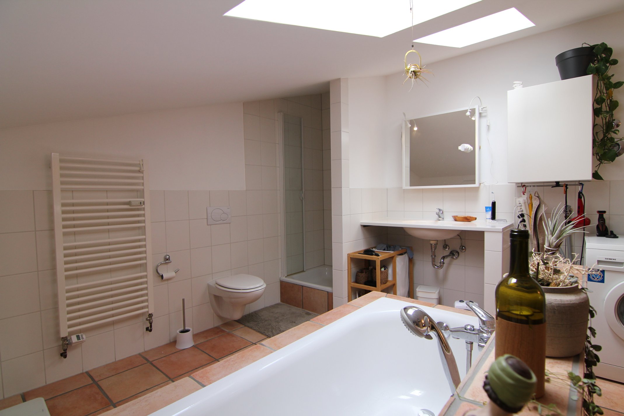 - Waschmaschine und Trockneranschluss im Bad