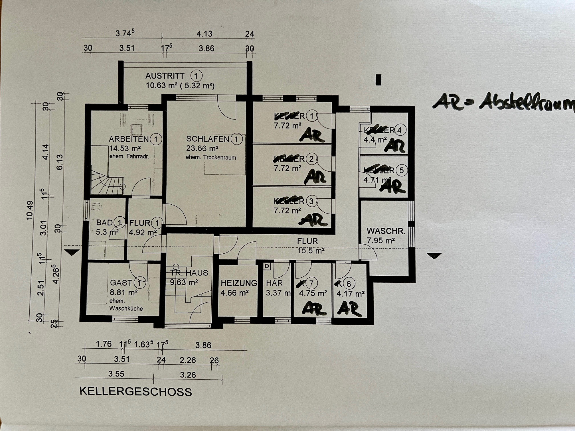 Im Kellergeschoss ist jeder Wohneinheit ein separater Abstellraum zugeordnet.